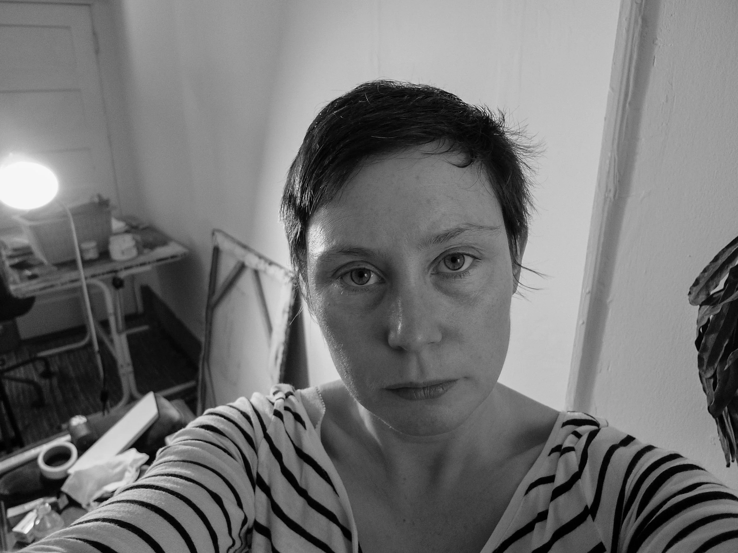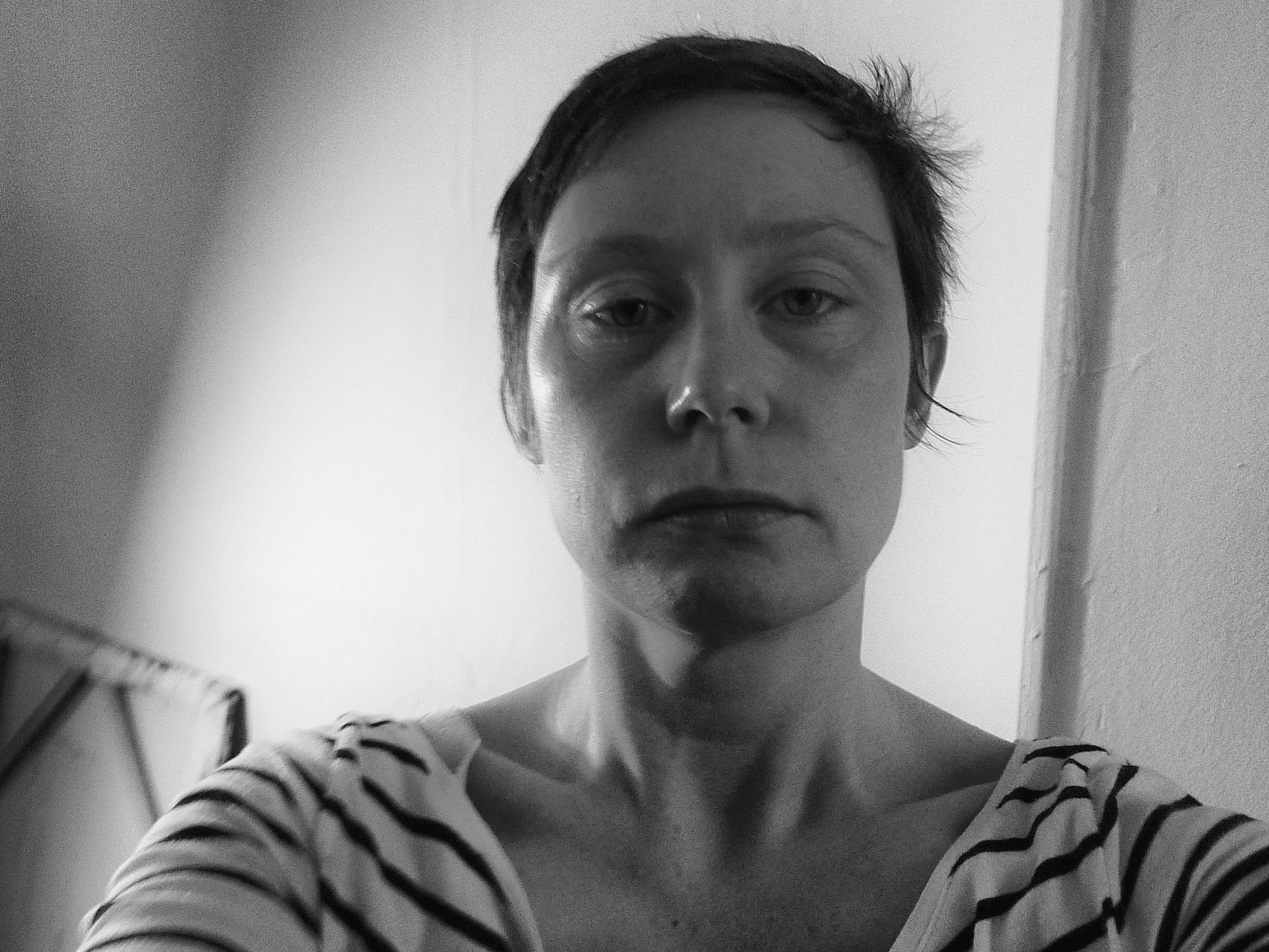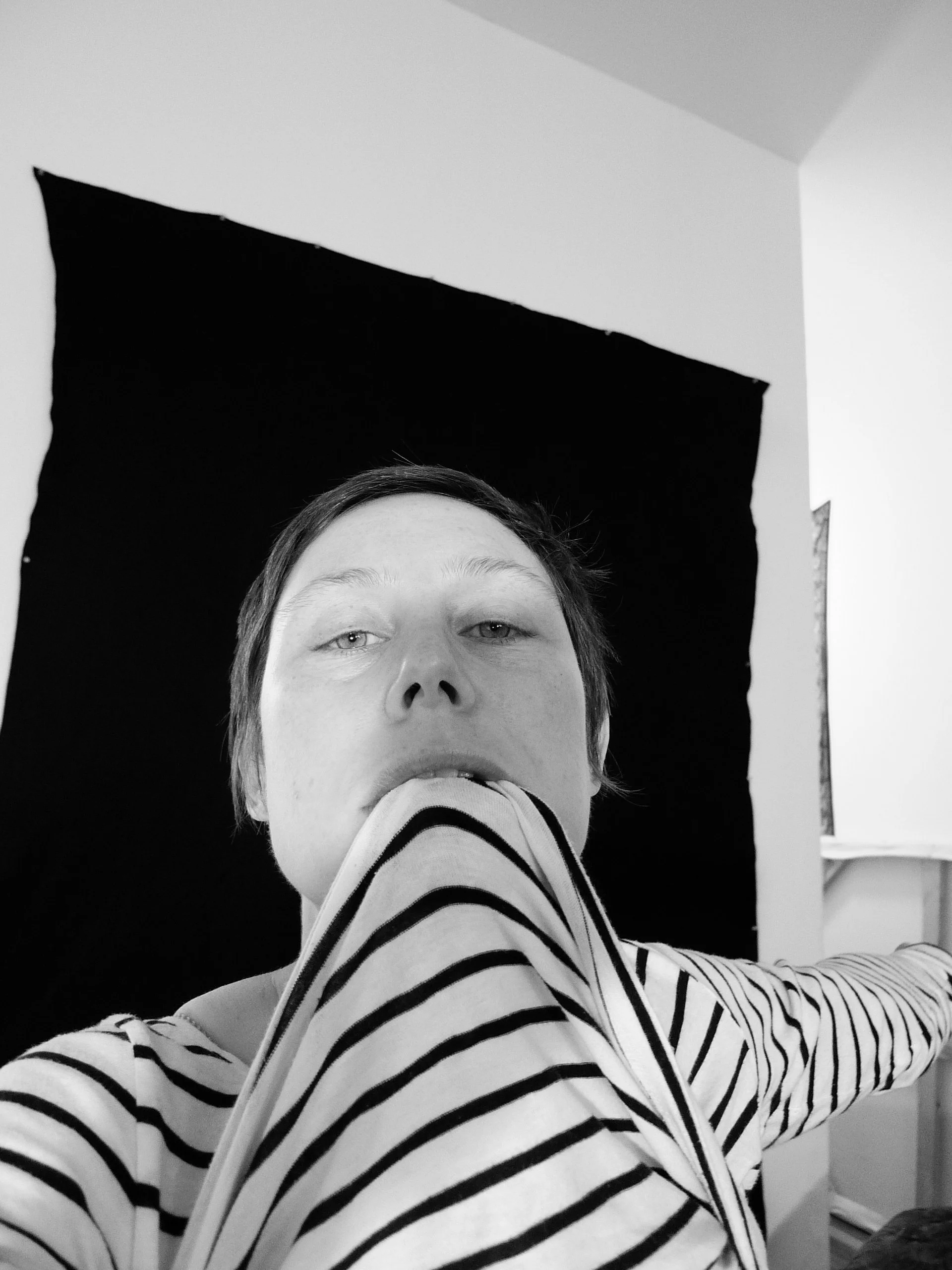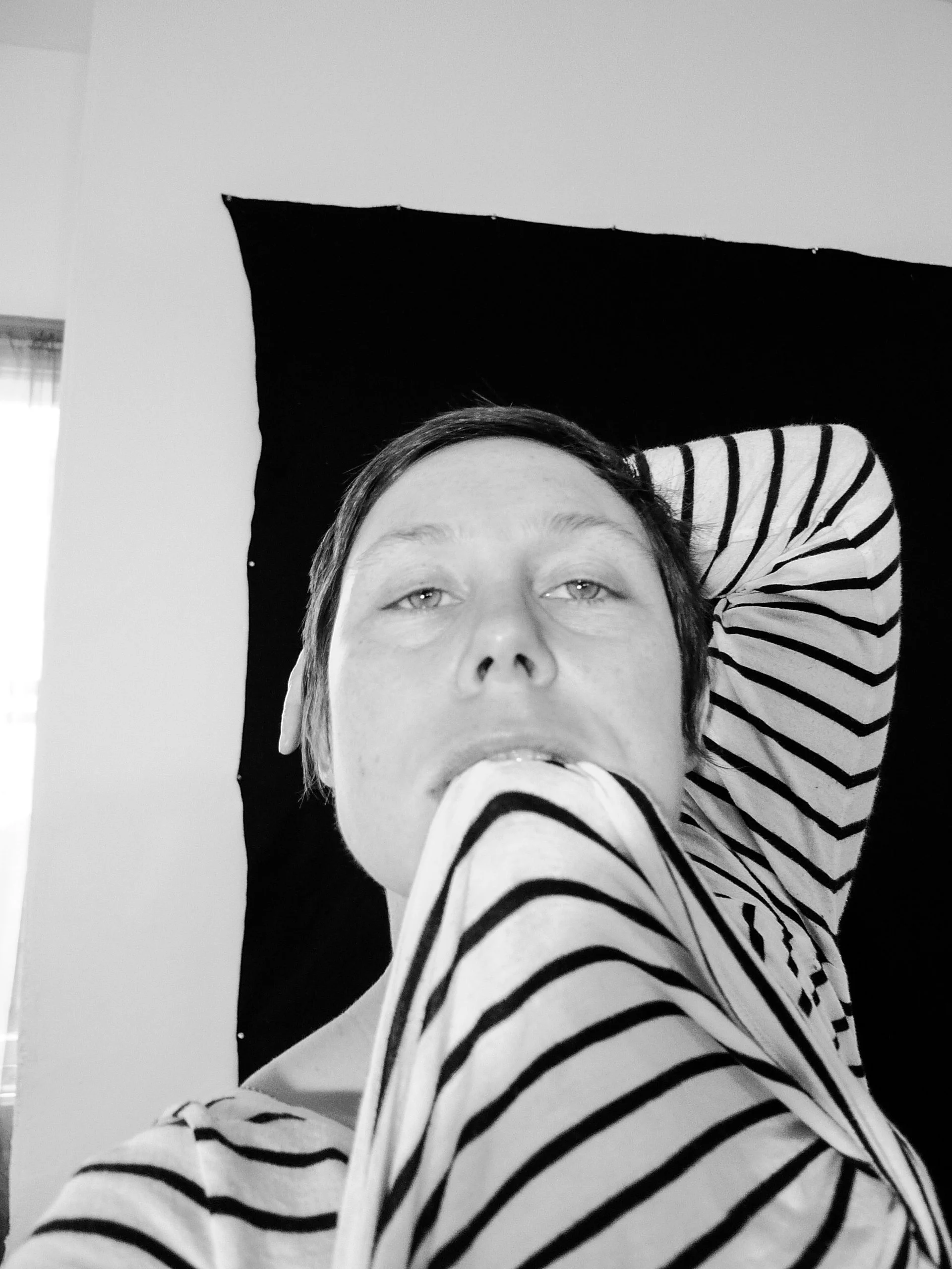 A sequence of self-portraits made in the studio, tracing the slow process of recognition through the act of photographing. Each frame marks a negotiation between presence and construction — the artist turning toward her own gaze until the camera, the body, and the room settle into alignment. The work unfolds as a study in looking, hesitation, and form; an unguarded record of becoming. The exploration of perception continues in Between the Seen where presence and performance unfold beyond the self.