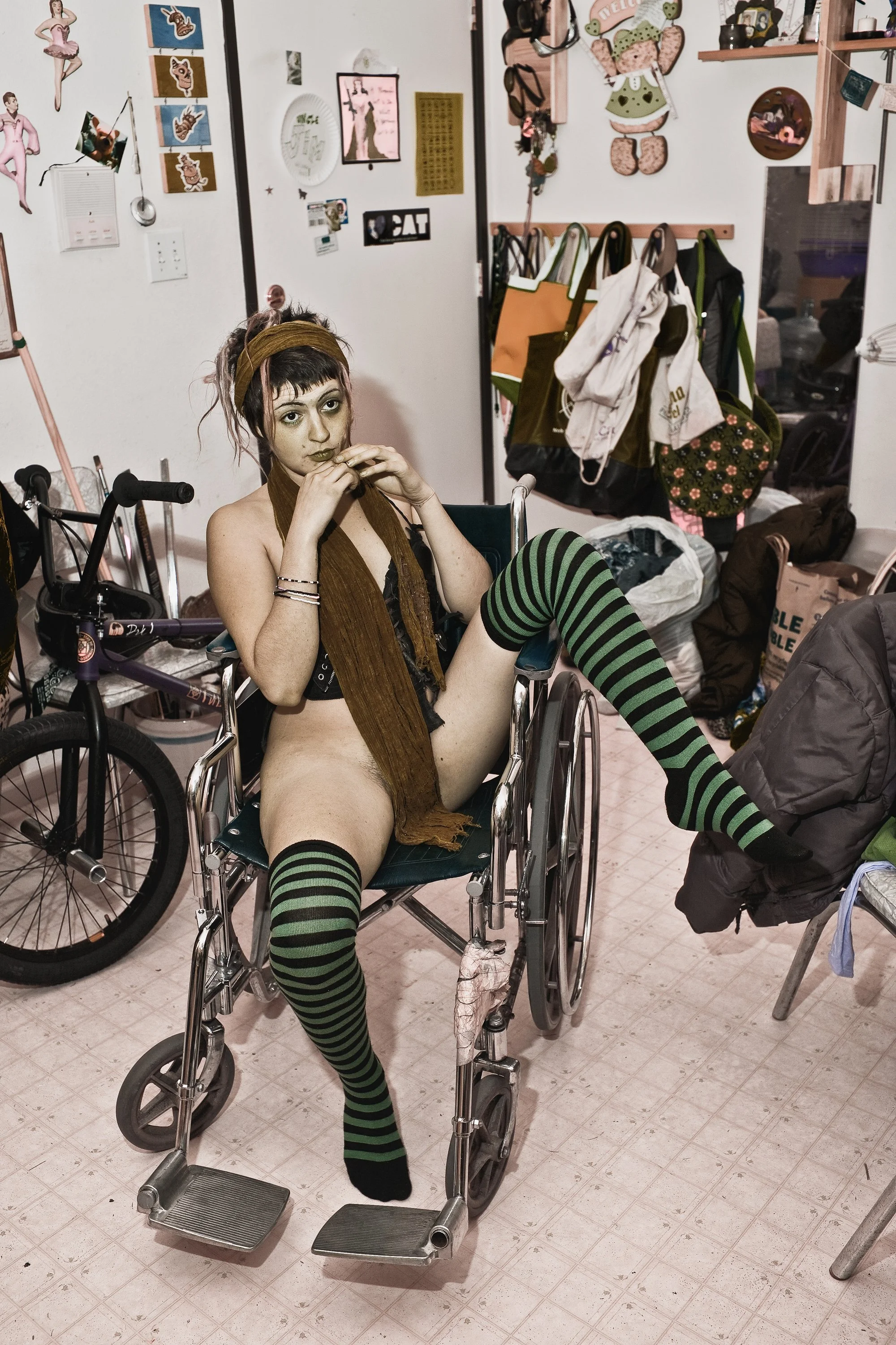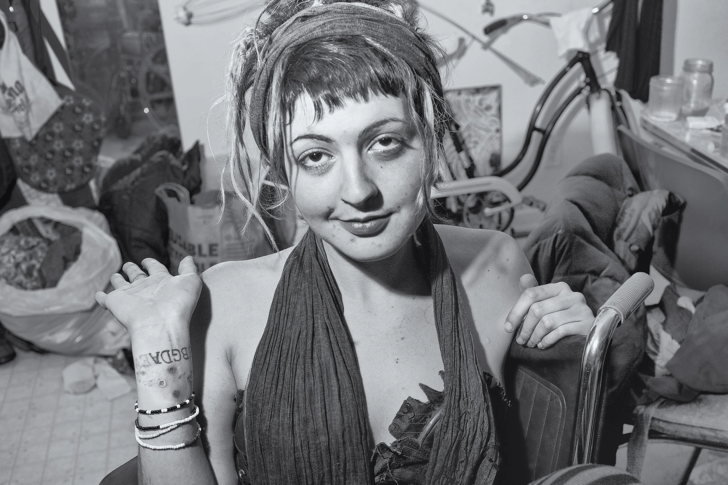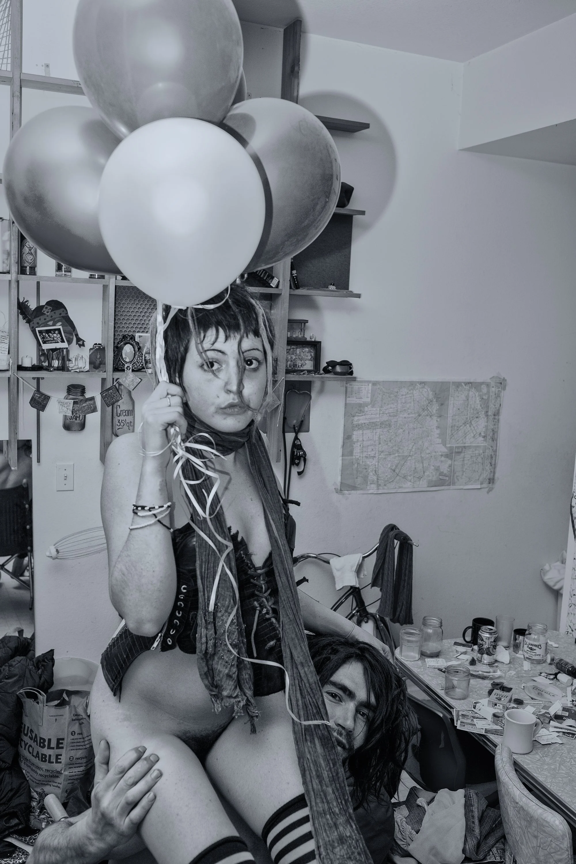 In “Tramps and Saints,” Kelly Rae Daugherty finds the sacred in the accidental. Shot inside the cluttered confines of a stranger's home, with nothing staged and little known, the series unfolds like a modern myth. Through instinctive composition and uncanny visual motifs—like balloons found tied to a parking meter—Daugherty reframes addiction, exhaustion, and tenderness as rites of passage. The result is neither performance nor voyeurism, but something closer to revelation. The series moves from Beggar’s Wave to Rapture, tracing faith within ruin.